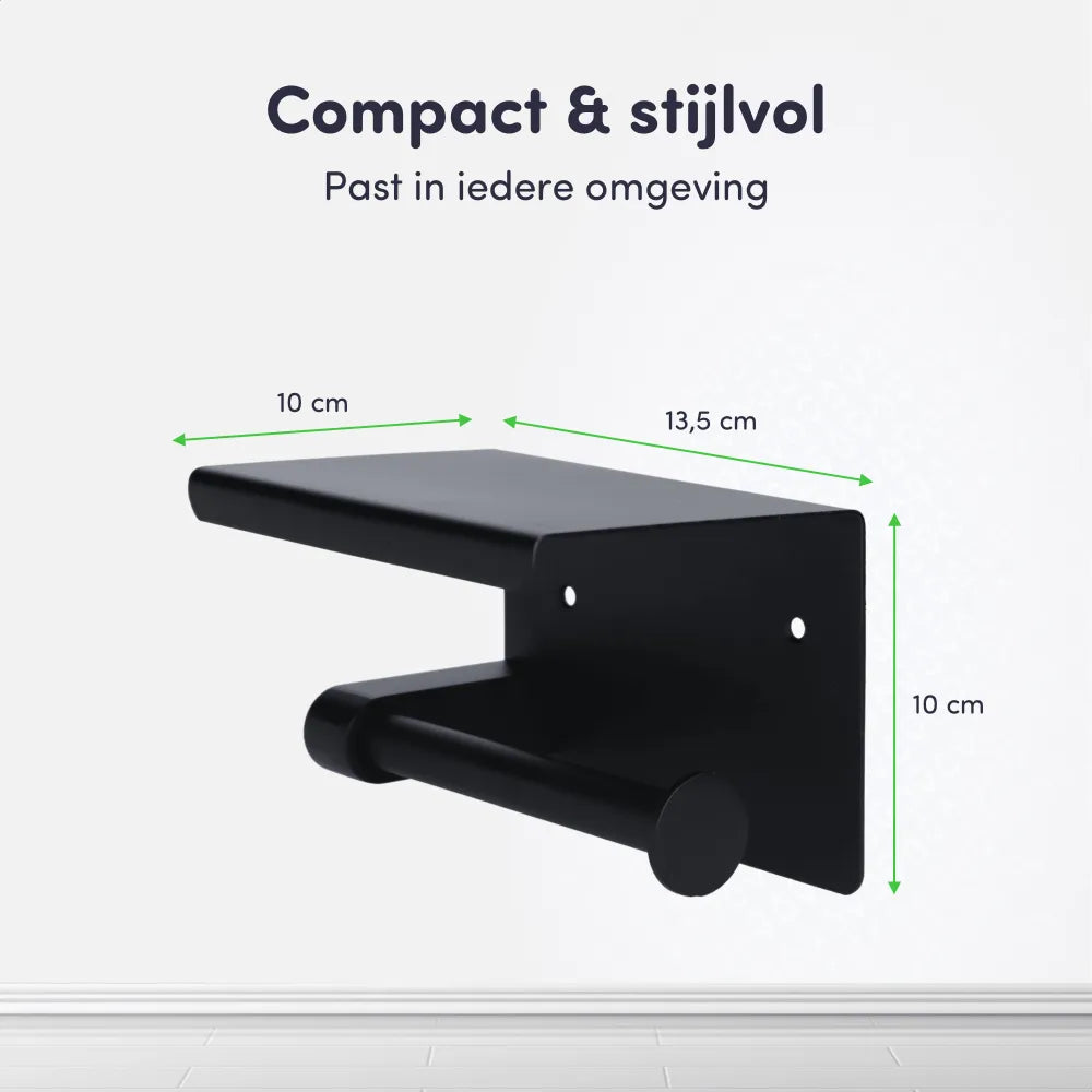 Met een handig smartphone plankje, zwarte accenten en een simpel plaksysteem is deze slimme wc-rolhouder mooi én functioneel! Deze stijlvolle toiletpapierhouder creëert extra ruimte op het toilet zodat jij comfortabel kunt genieten van een momentje voor jezelf. Wil jij je telefoon, een luchtje of extra rol wc-papier kwijt? Met dit slimme ontwerp heb jij alles binnen handbereik.