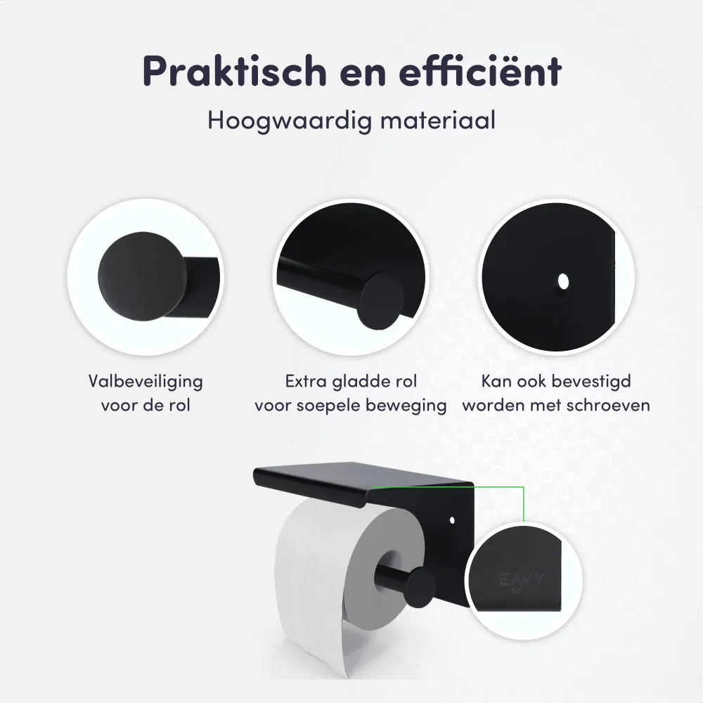 Met modern design en zwarte afwerkingen past jouw nieuwe aanwinst perfect binnen elk interieur. Of je nu van minimalistisch, industrieel of klassiek houdt, de EAVY toiletpapierhouder maakt jouw toilet helemaal af.